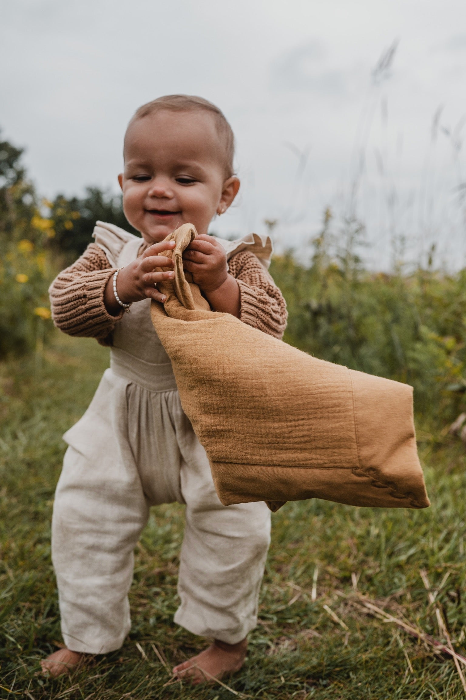 A soothing security 15x15 lovey designed to provide comfort and companionship from a baby's earliest days into early years. Made with premium organic cotton, this breathable, ultra-soft lovey offers warmth and reassurance for sensitive skin. Ideal for newborn snuggles, travel-friendly car seat adventures, and as a thoughtful gift for baby and her. Outer shell: Woven from premium organic jersey + muslin cotton that is pre-washed for extra softness and breathability Filled with a thin layer of 75-gsm polyester to give it a little fluff! Carefully crafted + sustainably sourced in India GOTS Certified + made without the use of harmful chemicals, pesticides and dyes -Comes wrapped in a headband (2 in 1) and instantly giftable for an expecting Mama. If the headband doesn't apply, Mama can double it up as a hair tie for herself. -25% of net annual profits are donated to helping kiddos born with pediatric heart disease."