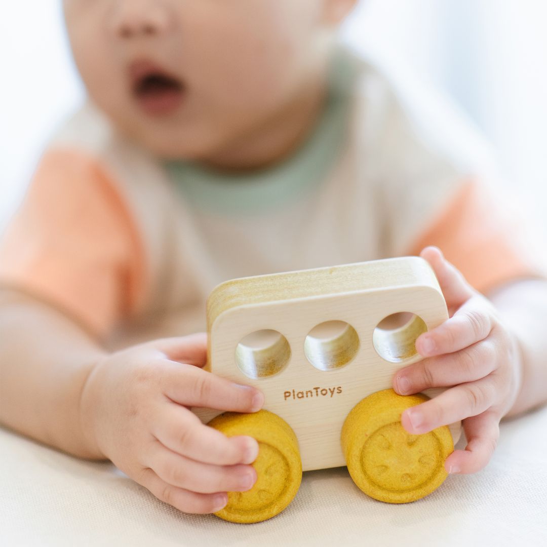 The PlanToys Timber Trail Bus is ready for play and encourages children to lead a trip with their imagination