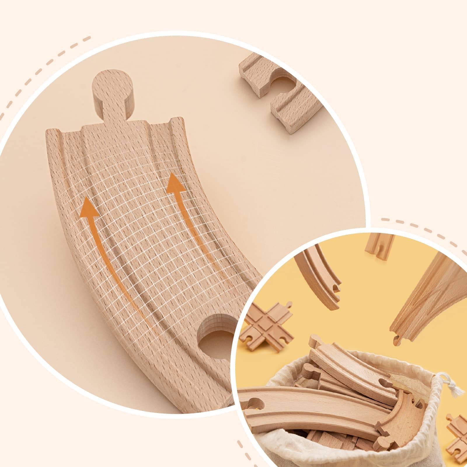 Durable and Safe Materials: Crafted from high-quality, non-toxic wood, this train track set is built to withstand the excitement of playtime. The smooth, polished surface ensures easy train movement, and rounded edges make it safe for kids to handle.