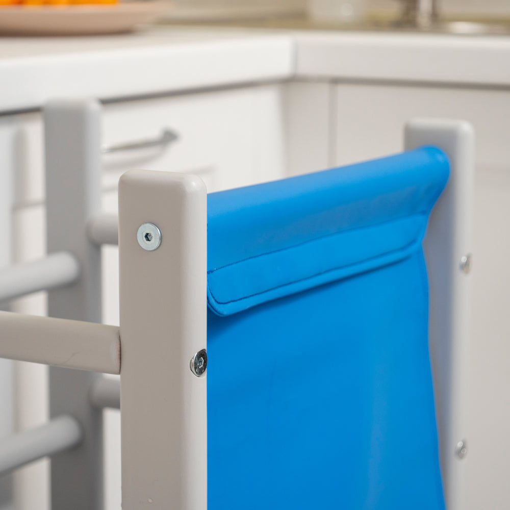 The Toddler Tower comes with a protective slipcover that easily attaches with velcro, ensuring your child's safety and preventing accidental falls. This cover also keeps the surface clean, requiring only a simple wipe with a damp cloth for maintenance.