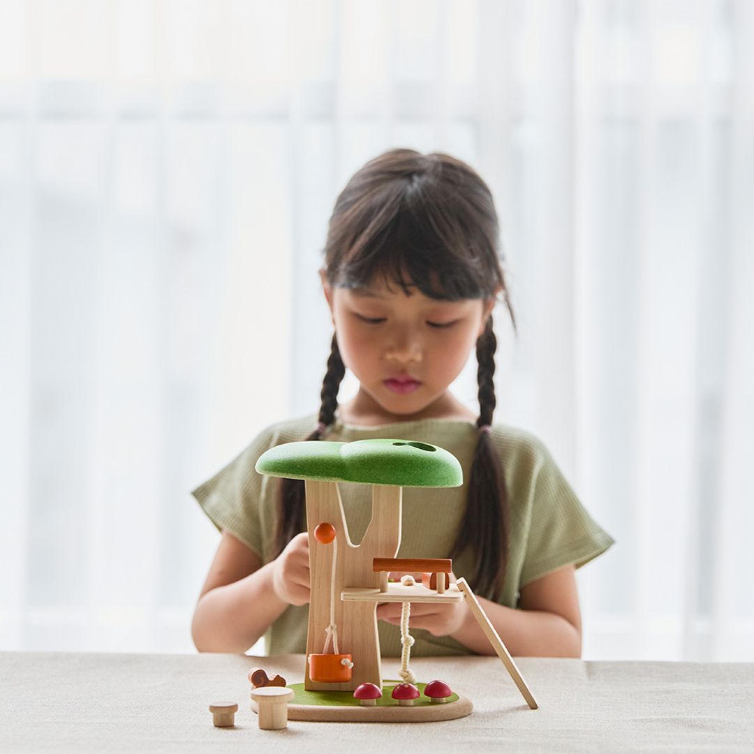 - Set includes 1 tree house, 1 figure, 1 squirrel, 3 mushrooms, 1 chest, 1 lantern, 1 table, 1 chair, and a ladder
