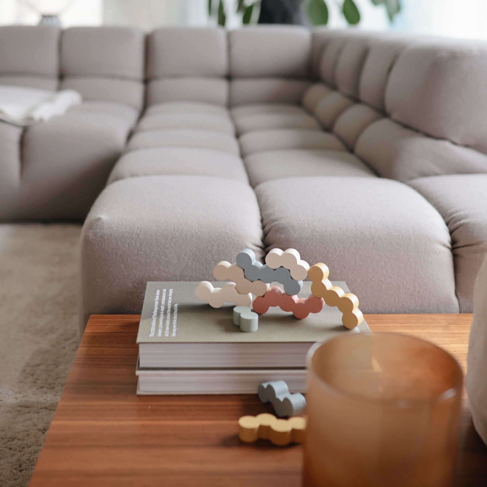 Designed with a delightful rounded bubble shape, our wooden balance blocks add a playful twist to traditional stacking toys. Crafted from smooth, FSC-certified wood and painted in calming colors with non-toxic paint, these blocks are perfect for nurturing creativity and fine motor skills. The gentle curves and soft hues invite little hands to explore, balance, and build.