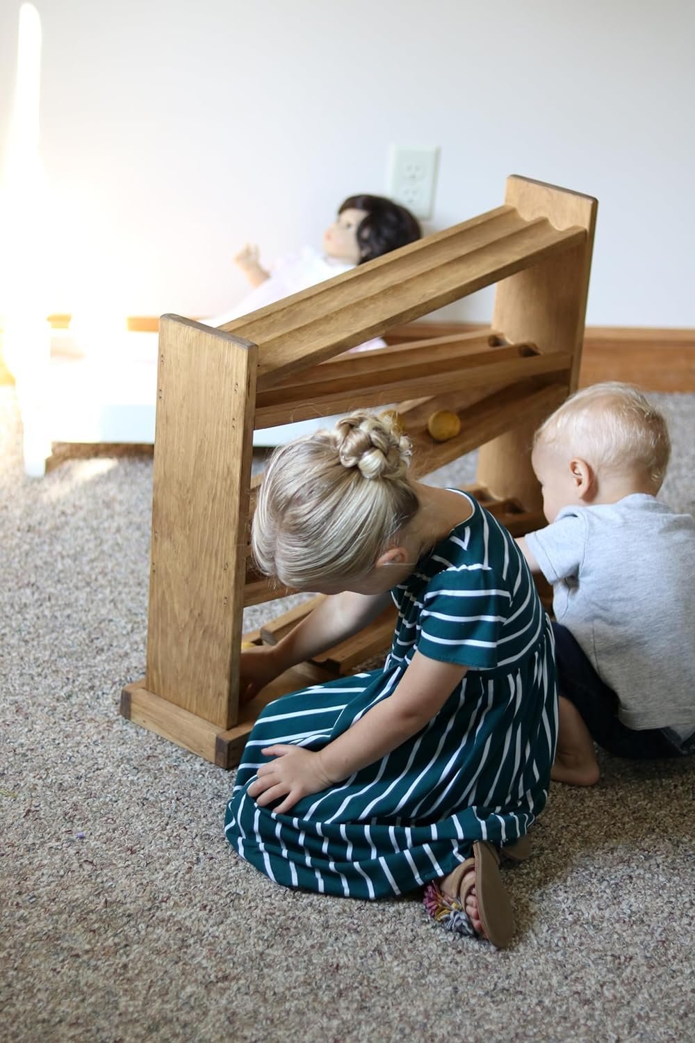Wooden Ball Roller Racetrack Toy, Amish-Made, with 8 Wooden Balls