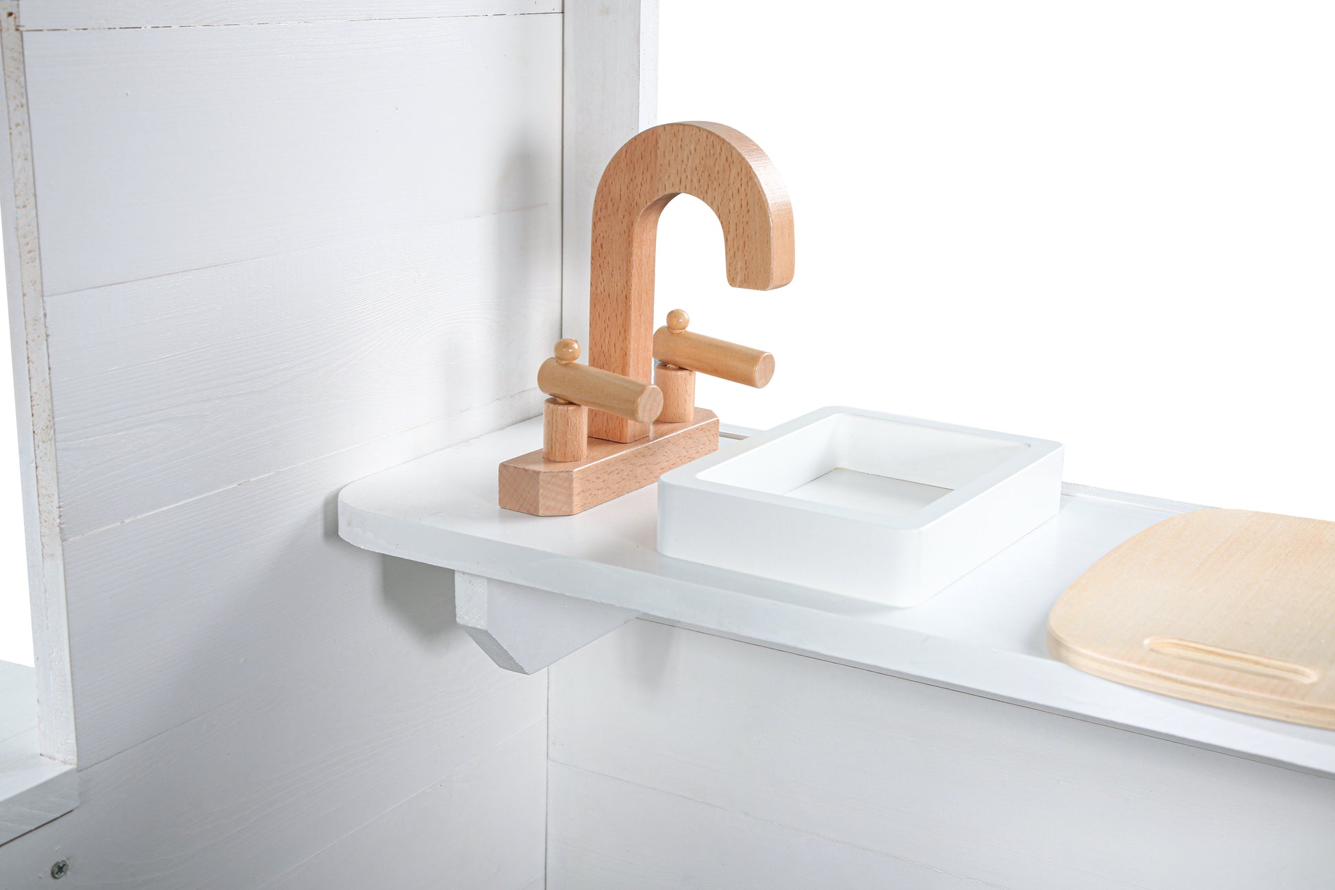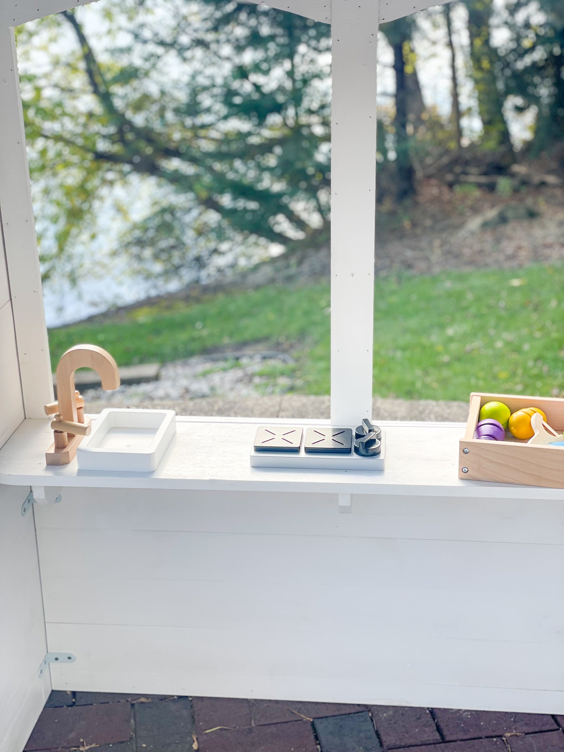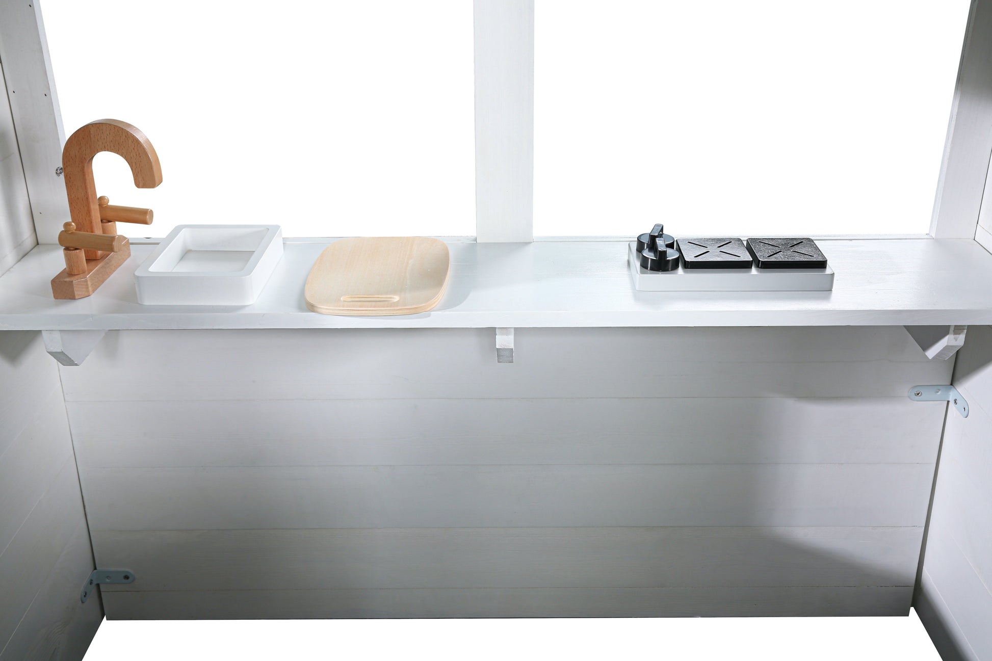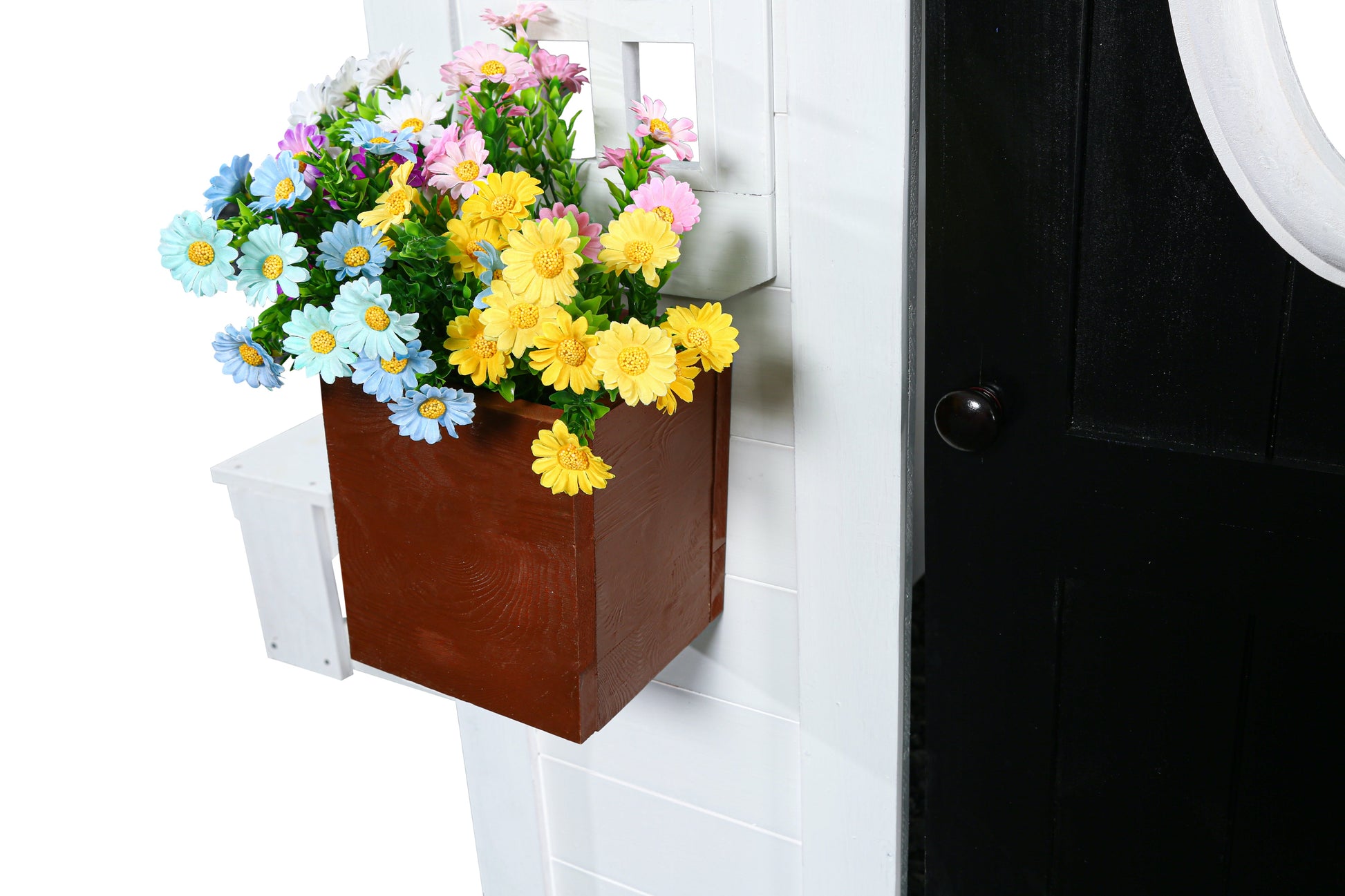 2MamaBees Zahara Playhouse will create hours of sensory play while also helping your little one explore the world of imagination. The beautiful white and black farmhouse design will create a stunning addition to any backyard. The Zahara Playhouse includes a built-in kitchen, beautiful wooden play food and cedar window boxes to create your own potted garden.